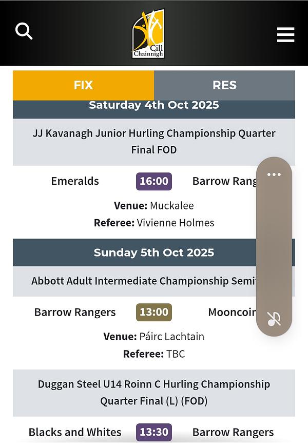 Then it's the under 14s in the hurling championship quarter final. That's a throw in at 1.30pm against Black's and Whites, in to Walsh Park, Skeoghvasteen.