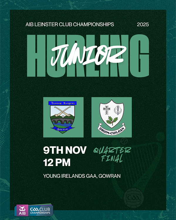 Next Sunday the 9th sees our Junior team out in the leinster club Junior Championship.